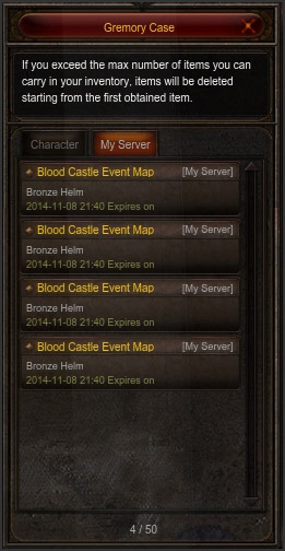 Items from GM - The items received from GM are stored in either Character Storage or Server Storage.